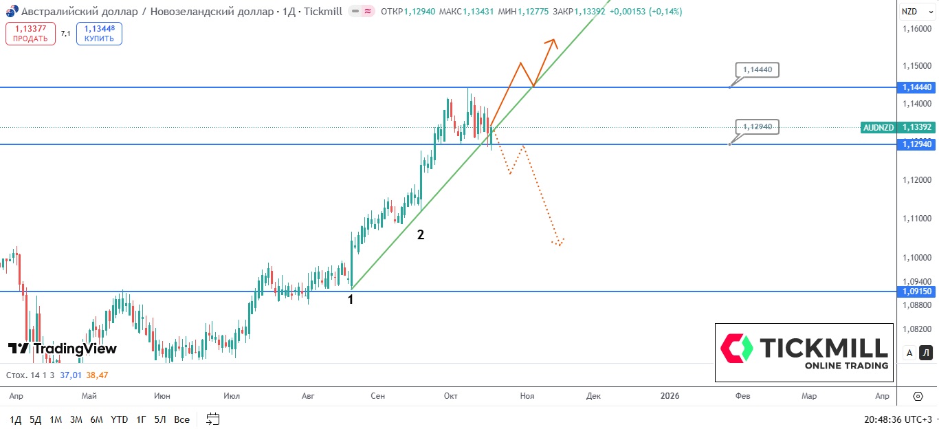 Кросс-курс закрыл пятницу "белой свечой", обозначив отбой от локальной восходящей линии тренда и локального уровня поддержки 1.1294. Отдельно стоит отметить, что в течение последних недель цена сформировала узкий диапазон ("прямоугольник"), и при реализации восходящего сценария всё внимание будет уделено уровню сопротивления 1.1444 с последующим его пробоем.